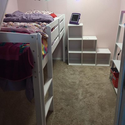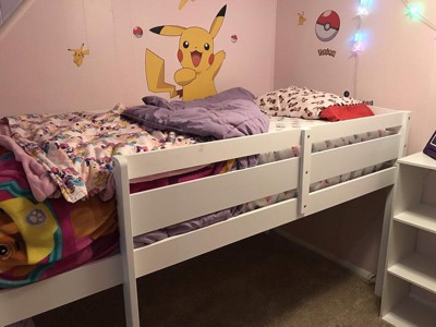 We ordered this for my daughter as she outgrew her toddler bed and she loves it. However, it is very cheaply made. The outer white pieces were falling off the particle board before we even put it together completely. It came in a huge box and I didn’t want to deal with returning so we used gorilla glue to hold it together.
