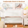 Costway Twin Size House Bed Kids Platform Bed w/ Padded Bench & Floating Shelves