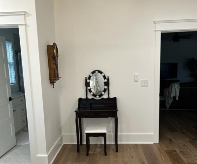 This vanity table can be turned into a writing desk.