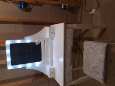 I bought this as a gift for my soon to be 9 year old daughter! Super easy to put together and looks great and feels solid! Only gave it 4 stars because one of the lights doesnt work. Got ahold of customer service and they refunded me 50 dollars. I took the mirror apart and wires on wires on wires. Not easy to ever replace these bulbs if they are replaceable at all! For the price it's a great buy and hoping to get at least a few years use out of it!