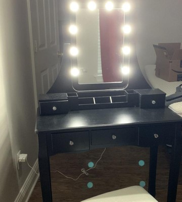 Costway Vanity Dressing Table Set w/Removable Box &10 Dimmable Bulbs Touch Switch