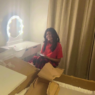 This is the perfect vanity for our 14 yo daughter. The changing lights are great and it’s a perfect fit in her bedroom. Easy to assemble. Highly recommend!