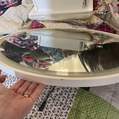 Wish the button for the light wasn’t near the center of the mirror. It was easy enough to put together and arrived free from damage.