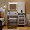 - 3-color Lights & Adjustable Brightness: The vanity table has a lighted mirror with 3 color settings (warm yellow/warm white/cold white) for a clear makeup experience. You can also long press the touch switch to adjust the brightness to suit your different needs.