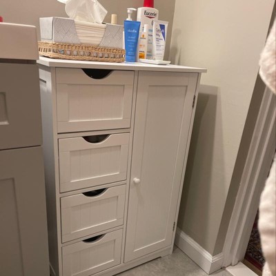 - 【Widely Use】: Costway bathroom floor cabinet is perfect for keeping your bathroom clutter free, it features four deep drawers and a cupboard to conceal towels, toiletries and other essentials. You can also decorate the top of the unit with candles and other objects to add color and character to your bathroom.