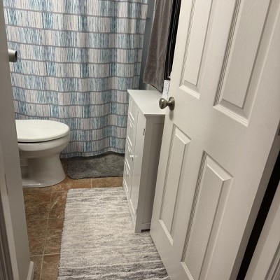 Excellent product! It’s sturdy and a nice size for our little bathroom. It’s decent quality for the price and extremely easy to put together. The directions are a little difficult to decipher at first but it’s pretty easy if you’ve ever put together IKEA furniture honestly. It’s a little smaller than I anticipated but we still like it. It helps hide bathroom clutter!