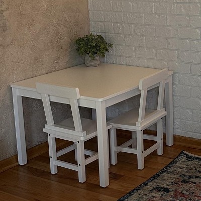 Costway Wooden Kids Table and 2 Chairs Set with Rubber Wood Legs Anti-slip Foot Pads White