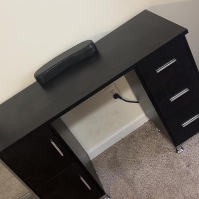Costway Wooden Nail Desk Station with Removable Wrist Rest Metal Legs & 3 Drawers, 2 Cabinets White
