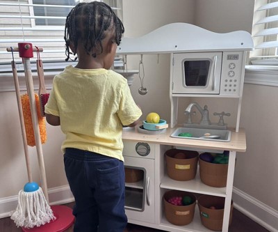 This play kitchen set offers a charming and realistic design that many children enjoy, providing hours of imaginative play. While it is sturdy and visually appealing, guests have noted challenges with assembly, including unclear instructions and misaligned parts. Despite these issues, the set is considered a worthwhile purchase for its engaging play value and durability, especially when on sale.