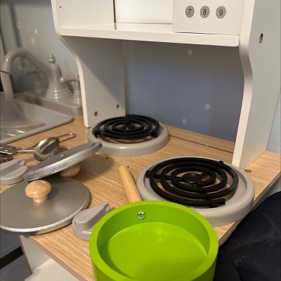 - Safe & Sturdy Materials: Crafted with durable MDF material, our kitchen cooking toy is sturdy and durable for long time use. Smooth round edges effectively prevent accidental bumping. Besides, the materials and paints are 100% safe for the little ones, which has passed the ASTM standard.