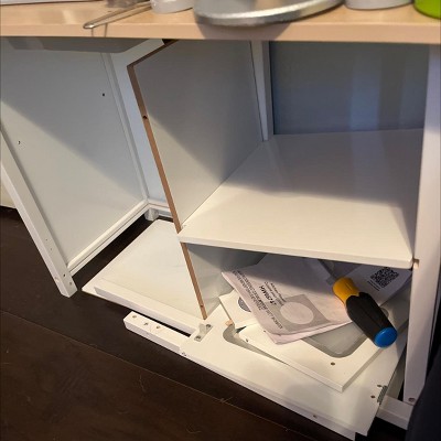 The instructions to assemble this play kitchen are written very poorly. The drawings that accompany the instructions are not detailed and don’t help in assembling the kitchen.