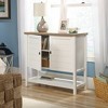Need a solution for your clutter and chaos? Check out this storage cabinet from the Cottage Road® collection. This bright and airy cabinet features hidden storage behind each of the doors along with two adjustable shelves for enhanced storage possibilities. It also features a lower open shelf for additional storage! Finished on all sides in Soft White® with a Lintel Oak® accent, this stylish cabinet will take your home from mess to yes in no time.