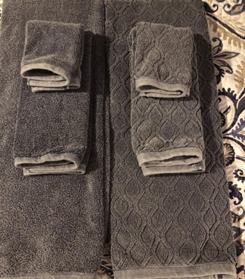 Cotton 6-Piece Bath Towel Set, Set Includes: Bath, Hand, and Face Towels, Denim Wash Diamond Jacquard and Classic Solid Terry Weave by Blue Nile Mills