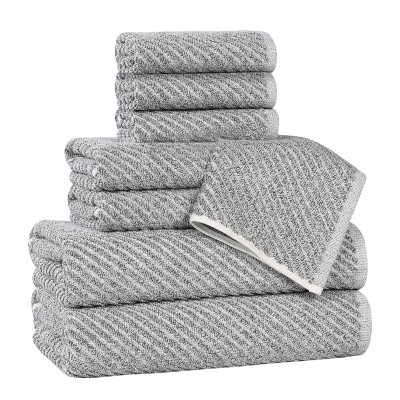 Experience the epitome of refined luxury with the Viscose Cotton Blend Medium Weight Soft Textured Ribbed 8 Piece Towel Set by Blue Nile Mills, an invitation to elevate your daily routine and transform your bathroom into a personal oasis. Woven from a carefully selected blend of long-staple cotton and viscose, these towels offer a spa-like experience in the comfort of your own home. The unique composition ensures a luxuriously soft feel against your skin, while the textured ribbed design adds a touch of visual intrigue and sophistication. The medium weight and quick-drying properties make these towels perfect for everyday use, ensuring a refreshingly luxurious experience each time.