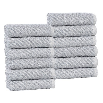 Viscose Cotton Blend Medium Weight Soft Textured Ribbed Face Towels Washcloths, Set of 12, Platinum - Blue Nile Mills