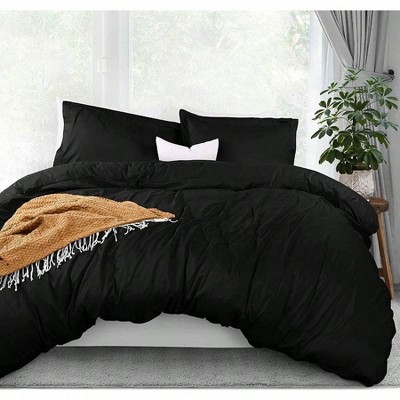 Cotton Duvet Cover Queen Size, Silky Soft Breathable, 3Pcs Moonless Night Black