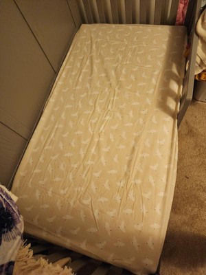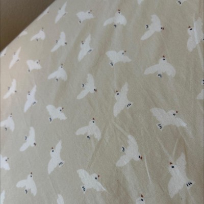 This Cotton Fitted Crib Sheet from cloud island™ is suitable for standard cribs and toddler beds. Made from 100% percale cotton with a soft finish, the standard crib sheet fits a six-inch mattress and is designed with all-around elastic for a secure fit. It's decked out in an allover white bird print on a light beige background, adding a dreamy touch of feathers and flight to your baby's nursery decor.