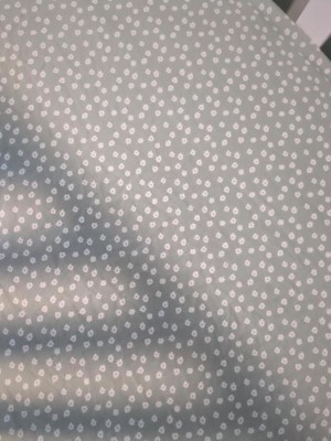 This Cotton Fitted Crib Sheet from cloud island™ is suitable for standard cribs and toddler beds. Made from 100% percale cotton with a soft finish, the standard crib sheet fits a six-inch mattress and is designed with all-around elastic for a secure fit. It's decked out in an allover white daisy print on a green background, adding a delightful touch of floral blooms to your baby's nursery decor.