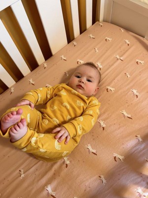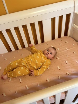 I love a simple crib sheet! The packaging of this crib sheet was so cute in its own matching fabric bag. Very appealing and gives you the opportunity to see/feel the sheet before purchasing. I did find the fit to be a tiny bit baggy around my baby’s mattress but perhaps that’s just because of the foam mattress we have. Pattern in my opinion is cute, and has a Montessori vibe to it. Fits in my girls nursery beautifully.