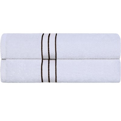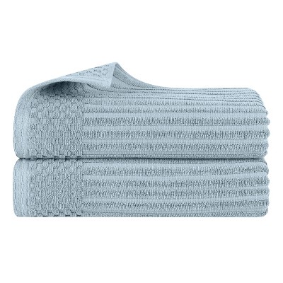 Wrap yourself in the soothing comfort of the Cotton Diamond Dobby Border Ultra-Plush Bath Sheet Set by Blue Nile Mills. Our Giza cotton towels feature impressive absorbency, a smooth texture, and silky feel for a luxury spa-like experience at home. The heavyweight thickness of each towel is durable and perfect for the bath, poolside, or at the beach. For a refined finish, each piece in this bundle features an elegant diamond dobby border and a hanging loop for effortless drying. These towels are available in Navy Blue, Charcoal, Chocolate, White/ Black, White, Ivory, Platinum, Gold, and Forest Green color options to match your bathroom decor style. Finished with secure hemmed edges to avoid fraying, these towels can withstand countless washes and last you years to come. This set includes 2 bath sheets to add luxury to your bathroom essentials.