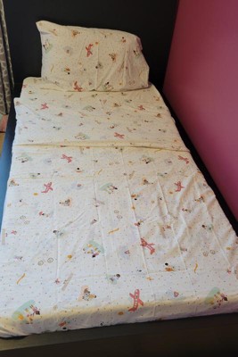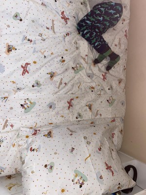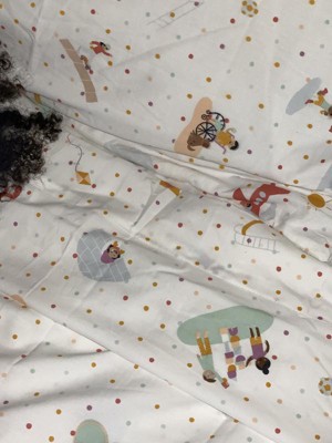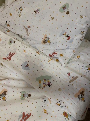 Update your kiddo's bed linens with this Pals Cotton Sheet Set from Pillowfort™. This coordinated sheet set includes one fitted sheet, one flat sheet and one pillowcase, each made from 100% cotton percale material to provide complete comfort in bed. It showcases a playful print of pals surrounded by dots on a white backdrop to lend fun flair to their room decor. Perfect for everyday use, this bedding set can be machine washed for easy care.
