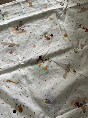 My daughter is really happy with her Pillowfort Pals Cotton Sheet Set. This twin size set is super cute, it features children engaged in a variety of fun activities. A perfect print for those little girls who are starting to feel too old for character bedding, but young enough to still want a fun print. The sheets are soft and comfortable. The elastic on the fitted sheet is stretchy and deep enough to easily go on my daughter's twin mattress. The matching flat sheet and pillowcase complete the adorable look. I always wash bedding before using it, so I washed it up before putting it on her bed, and it washed up great.