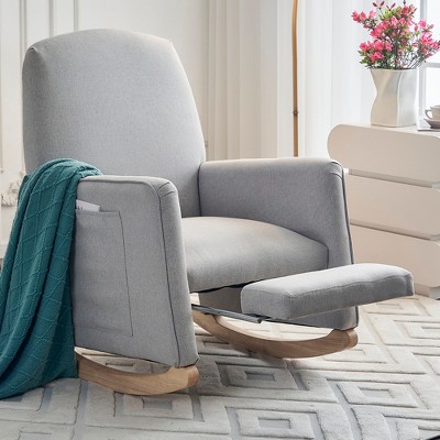 Cotton Linen/Teddy Fabric Nursery Rocking Chair, Upholstered Accent Chair With Adjustable Footrest 4W -ModernLuxe