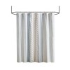 - 100% cotton printed with tufted chenille stripe trim shower curtain