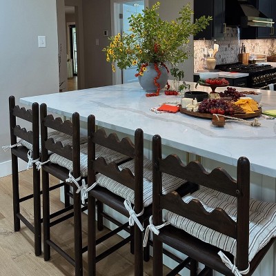 submitted byS - 1 year agoA: Hello Mimi - We appreciate your interest in this comfy Cotton Striped Chair Pad Black/Natural. The dimensions (overall) is 15 Inches (W) x 15 Inches (D), 2.1 Inches thick. I hope this information helps. – Ryan