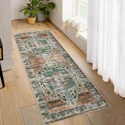 Coucheta Washable Rug Non-Slip Vintage Low Pile, Distressed Floral Rubber Backing Carpet for Kitchen Entryway Laundry,Multiple Sizes and Colors