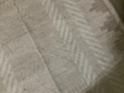 Rug comes folded in small box approximately 24x24 inches resulting in numerous creases that do not appear to be going away. I ordered two but took the unopened one back. Very thin material. Not going to use in the house looks awful. Maybe patio
