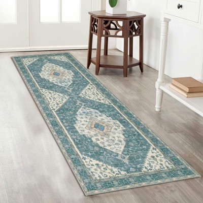 Coucheta 2*6ft Washable Boho Traditional Runner Rug, Vintage Print, Foldable Non-Shedding Low Pile Non-Slip Carpet for Living & Dining Room, Bedroom