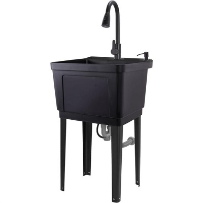 Coucheta 21x21x33inch Commercial Kitchen Sink, Single Bowl Stainless Steel Sink, Pull-Out Faucet, Freestanding Washing Hand Basin with Open Shelf