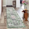 Coucheta Vintage Runner Rug- Non-Slip Washable Carpet, Distressed Floral Pattern, Low Pile Hallway Kitchen Bath Mat, Multiple Sizes and Colors