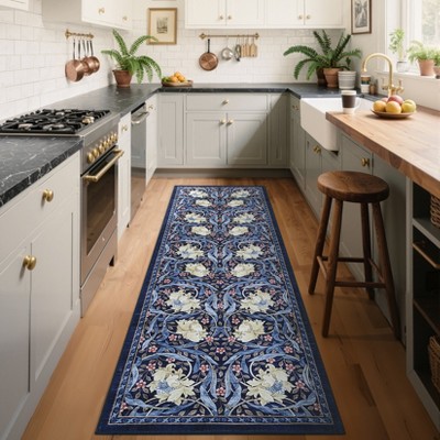 coucheta 2x6ft Washable Runner Rug, Vintage Floral Foldable Soft Low-Pile Non-Slip Stain Resistant Carpet, for Hallway, Bedroom, Kitchen, Blue