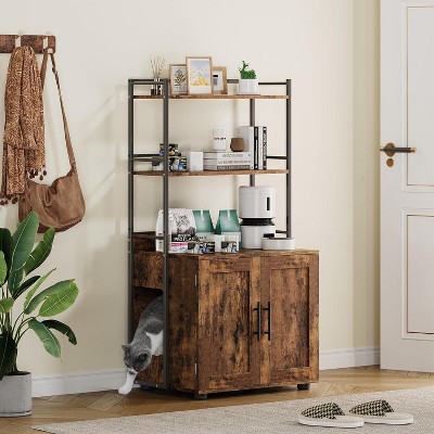 coucheta 32.4” Cat Litter Box Furniture with Storage Shelves, Hidden Litter Box Enclosure and Double Doors, 2-in-1 Cat Washroom Cabinet