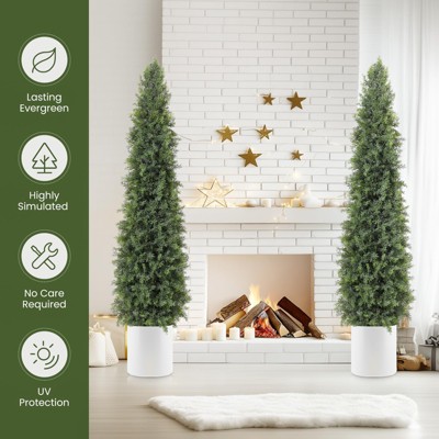 Coucheta 36inch Artificial Cedar Topiary Tree for Outdoor, Tall Faux Cedar Trees,Potted Fake Cypress Plant, Artificial Plants for Decor, Set of 2