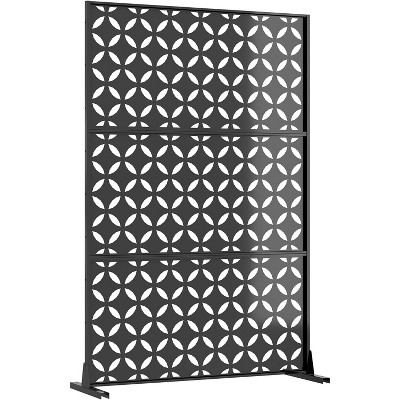 Coucheta 38"W x 50"H Outdoor Privacy Screen Black/Teak - 2-Panel Aluminum Frame & Vinyl Walls for AC Unit, Pool & Trash Can Enclosure