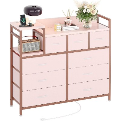 Breathe easy in a clutter-free, fully charged space! This sleek 39" Rich Brown dresser combines 9 deep fabric drawers with a built-in charging station—perfect for stashing clothes, gadgets, or remotes while powering phones, tablets, or your TV. You’ll love how its modern industrial design tucks neatly into bedrooms, living rooms, or hallways, turning chaos into calm.