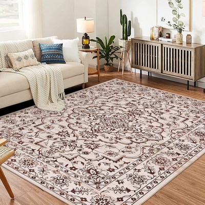 Coucheta 3x5Ft Area Rug Washable Non-Slip Vintage Floral Carpet for Living Room Kitchen Bedroom,Brown