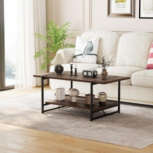 Product Name: Coucheta 40 Inch Farmhouse Coffee Table with Storage Shelf, Durable Steel Frame, Multi-functional, Easy Assembly(Dark Oak)