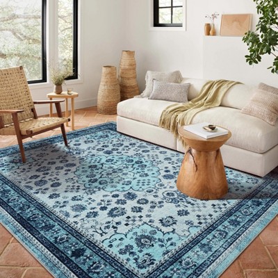 coucheta 5x7ft Machine Washable Area Rug for Living Room, Modern Non-Slip Stain Resistant Foldable Accent Carpet, for Bedroom, Dining, Blue