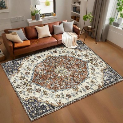 coucheta 5x7ft Machine Washable Area Rug for Living Room, Modern Non-Slip Stain Resistant Foldable Accent Carpet, for Bedroom, Dining, Brick Red