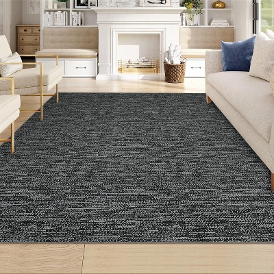 Coucheta 5x7ft Modern Kitchen Runner Rug Non-Slip Stain Resistant Washable Low Pile Floor Mat for Bathroom Bedroom Entryway,Black