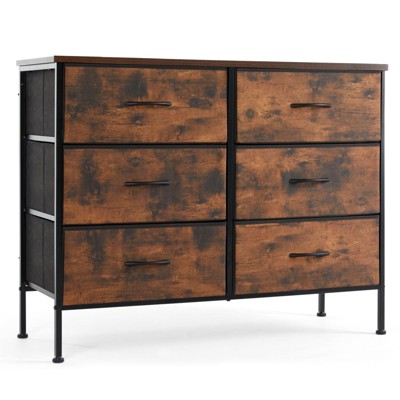 Coucheta 6-Drawer Tall Dresser with Curved Legs & Rattan Accents, Boho Freestanding Storage Cabinet for Bedroom, Brown
