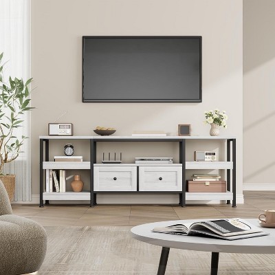 【Sturdy and Reliable Structure】: This TV cabinet with storage drawers is made of high-quality MDF engineered wood to ensure durability and stability. The 25mm thick waterproof desktop can bear 220 pounds, and each shelf can bear 25 pounds.