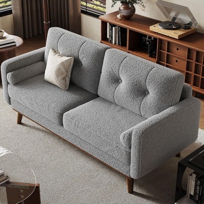 Enhance your living space with this 65" Mid Century Modern Loveseat Sofa, perfect for small spaces. Upholstered in soft and durable, this 2-seater couch features a stylish button tufted design that adds a touch of elegance to any room. Itswood legs provide sturdy support and a timeless look. Ideal for living rooms, bedrooms, offices, or apartments, this compact loveseat combines comfort and style without compromising space. Easy to clean and maintain, it’s a versatile addition that complements various decor styles. Experience the perfect blend of functionality and mid-century charm with this small, chic sofa.