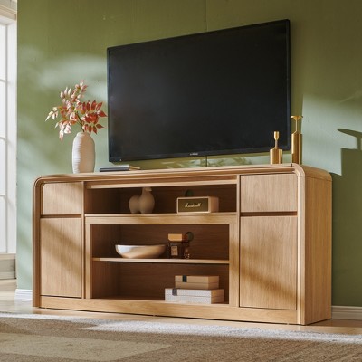 【Abundant Storage Space】 The long entertainment center with two open spaces with 6 storage cabinets and open soundbar shelf for a variety of storage needs and all your multimedia equipment.