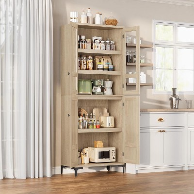 Coucheta 71 Inch Tall Storage Cabinet, Kitchen Pantry 5 Tier Bathroom Cabinet with 4 Doors Adjustable Shelves for(pear wood, 4 Door with Glass)