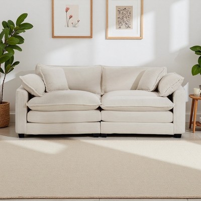 Coucheta 80" 3-Seater Couch, Deep Seat Sofa with Linen Fabric & Metal Legs, Modern Comfy Sofa with pillows, Couch for Living Room, Apartment & Office